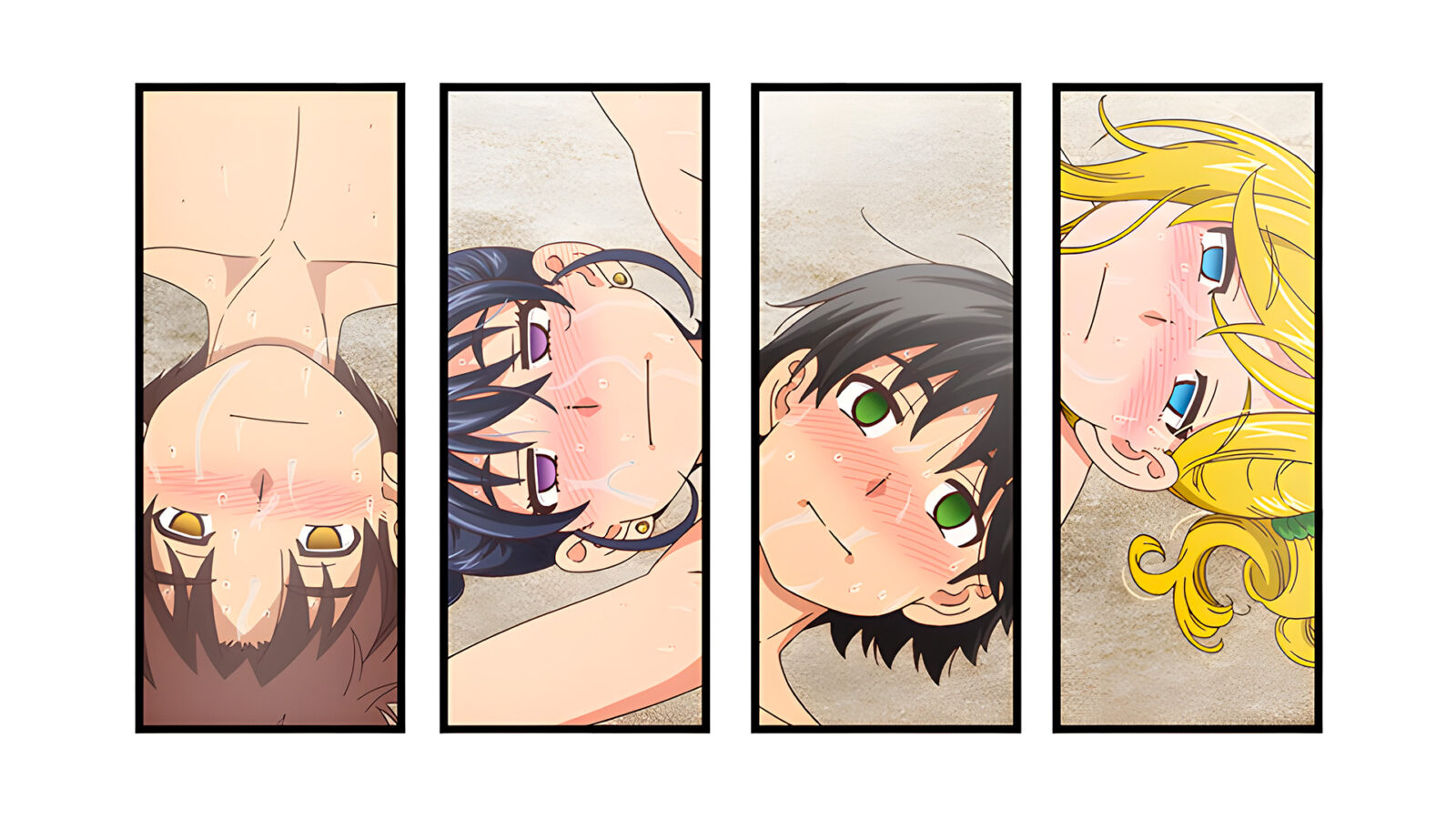 On the beach, under the blue sky, Erina and Shinobu tease each other as their partners finger their pussies and penetrate their asses, gradually losing themselves until they reach absolute ecstasy.
