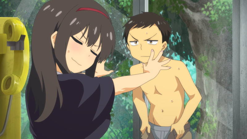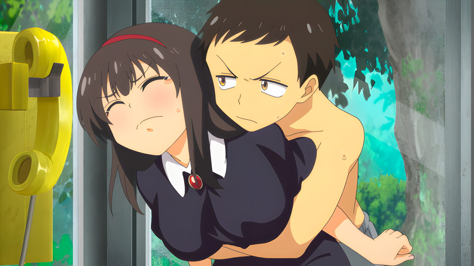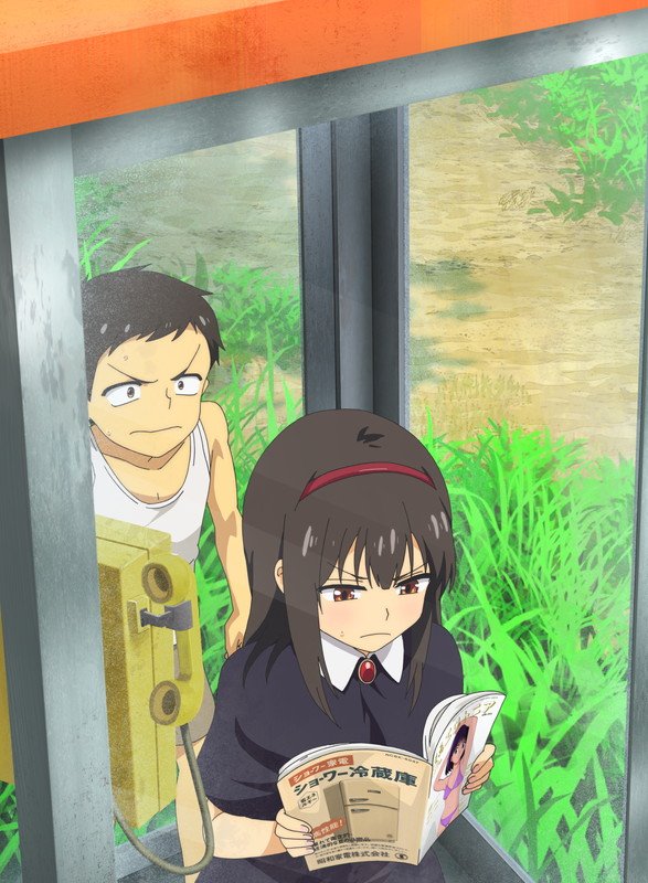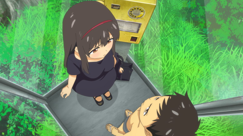Yoshi is walking along a mountain path with a bug net and cage in hand when he notices an unfamiliar girl in a phone booth. The girl notices Yoshi looking in the direction and calls out to him. The girl’s name is Sachi, and she seems to be having trouble getting through on the phone. Yoshi can’t leave her alone and enters the booth. But then the bug net gets stuck in the door, preventing him from getting out. To escape the heat, Yoshi takes off his clothes. Sachi hesitates, but she can’t stand the heat and takes off her clothes. Yoshi, seeing Sachi’s figure, becomes sexually aware. An insect flies out of the insect cage Yoshi is holding. Sachi panics and embraces Yoshi. Yoshi is struck by the softness of Sachi’s body.